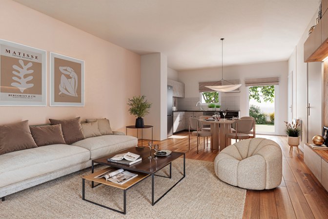 Ce projet est idéalement situé, 19 rue des Fougères, à proximité de tous commerces et services, derrière la maison de santé. Le programme est composé de 19 maisons neuves en duplex (10T3 et 9T4) avec une date de livraison prévue au 1er trimestre 2026. Les prix de vente sont très attractifs puisqu’ils démarrent à partir de 216 000 € pour un pavillon de type 3 de 76 m² SH pour une maison entièrement finie (cuisine équipée, placard équipé, terrasse, garage, clôtures…). Les familles bénéficient également de frais notariés réduits (entre 4200 € et 4750 € maximum). En tant que futur propriétaire, elles auront la possibilité de personnaliser leur logement selon leurs goûts concernant notamment le choix de la couleur de la cuisine équipée, du revêtement de sol et de la faïence de la salle de bain.